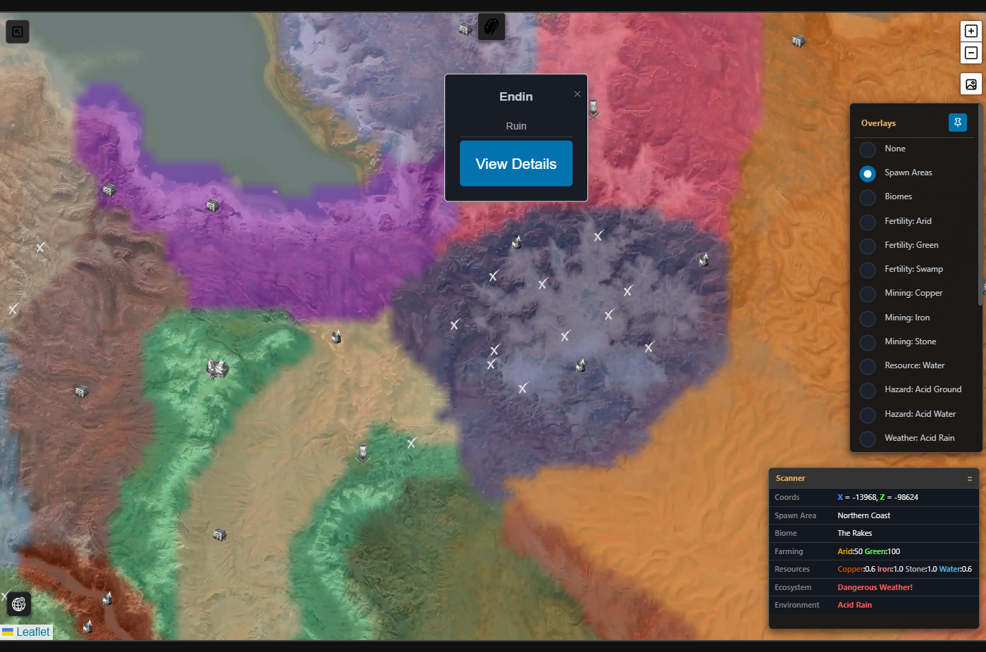 PNG icons matched to markers as according to their type classification.Extraction and visualization of a modified road network before cleanup. Native (green), custom (yellow) and modified (purple).Initial proof of concept for town layout viewer.Colorful roads, borders, resources & weather layers.Road editor progress...Consumes polylines and allows editing thereafter.Painting & Planning tools for the map.